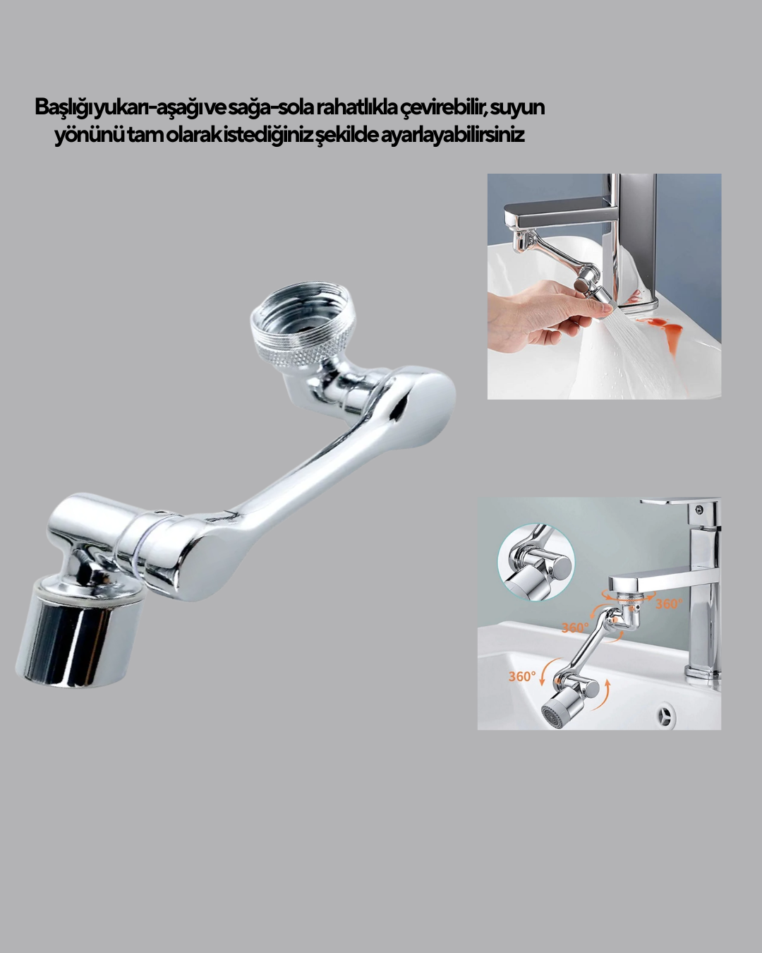 1080° Dönebilen Musluk Ucu – Su Tasarruflu Esnek ve 360° Çift Eksenli Başlık (Kopya)