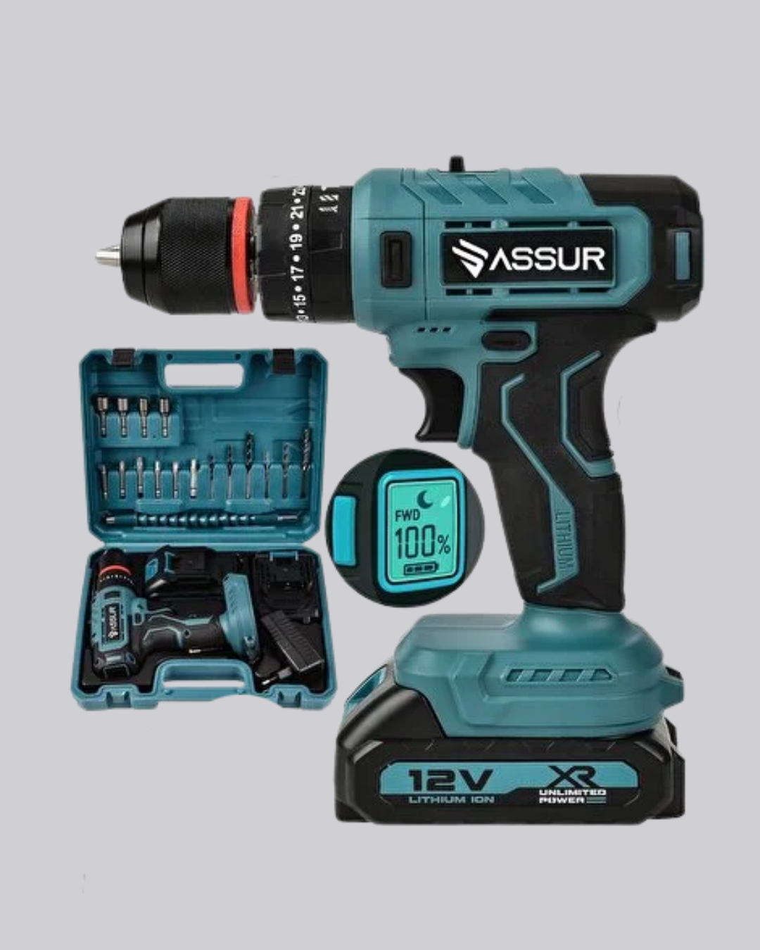 Dijital Ekranlı Matkap Seti Çift Akülü
