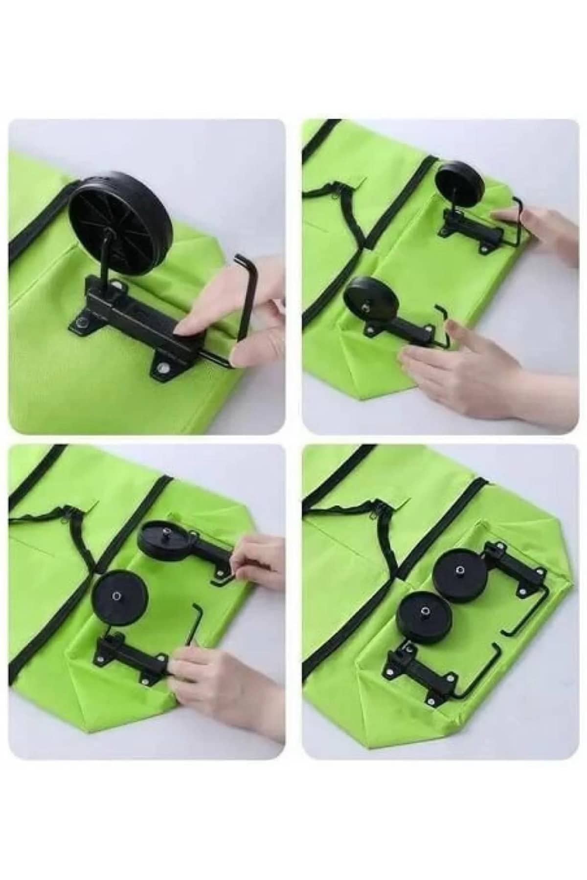 Katlanabilir Tekerlekli Çantalı Çarşı Pazar Arabası Alışveriş Çantası Piknik Çantası