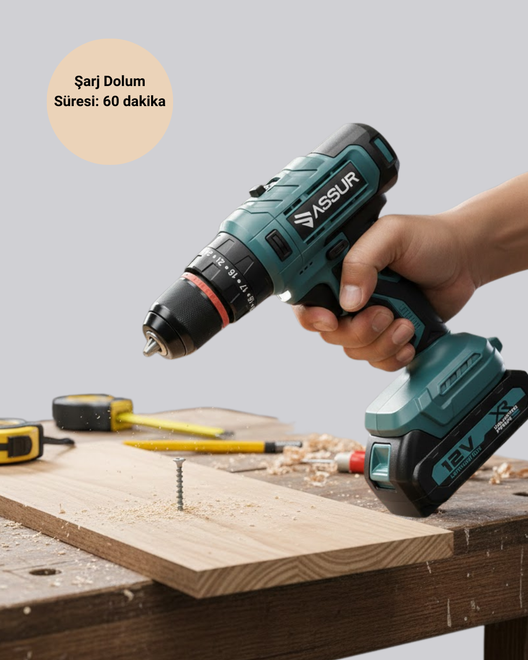 Güçlü Şarjlı Matkap Vidalama Çift Batarya