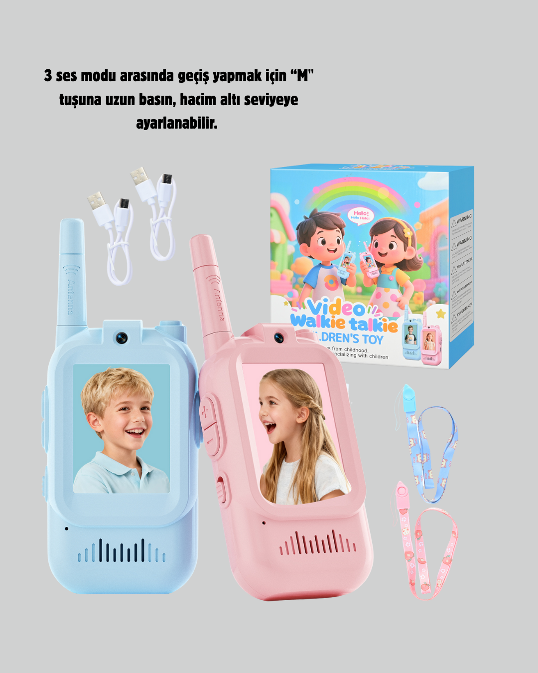 Çocuk ve Bebek Telsizi – 22 Kanal VOX Modu USB Şarjlı Renkli Ekran