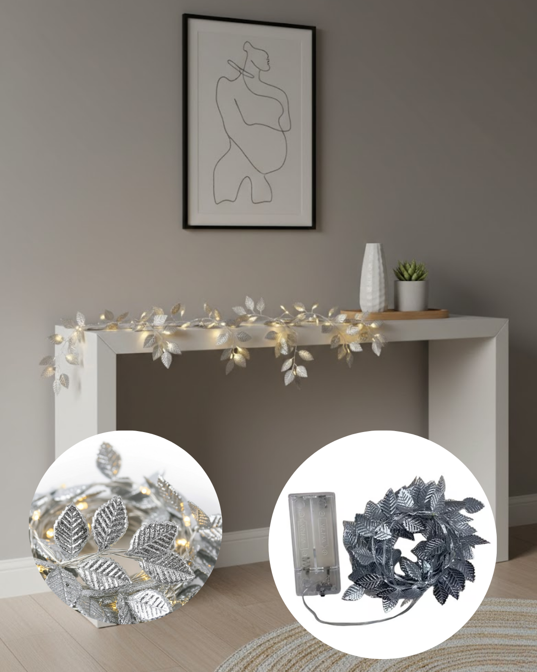 Pilli Gümüş Yaprak LED Işık Ev İçi ve Yılbaşı Dekor Aydınlatması