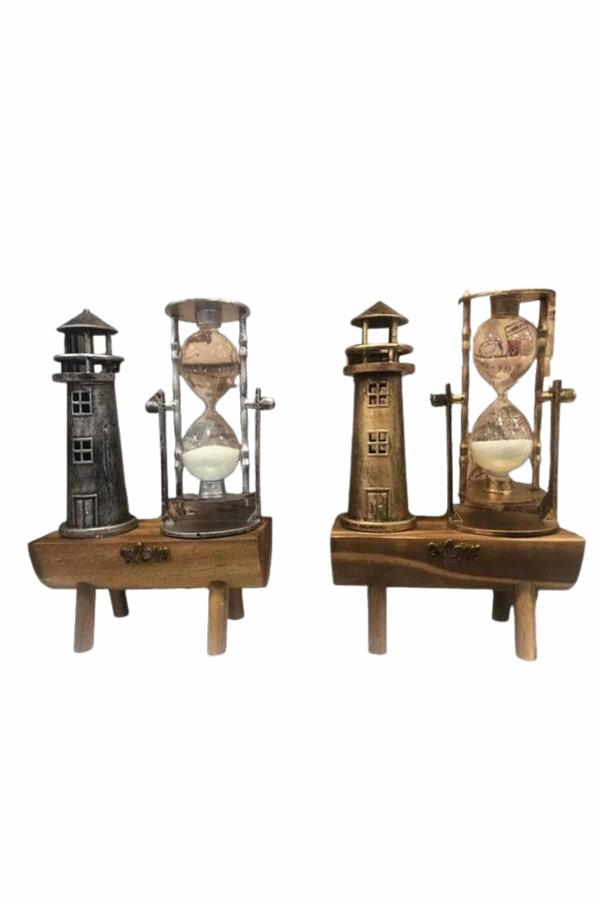Hediyelik Eşya Retro Deniz Fenerli Kum Saati Ahşap Görünümlü Dekoratif Eşya