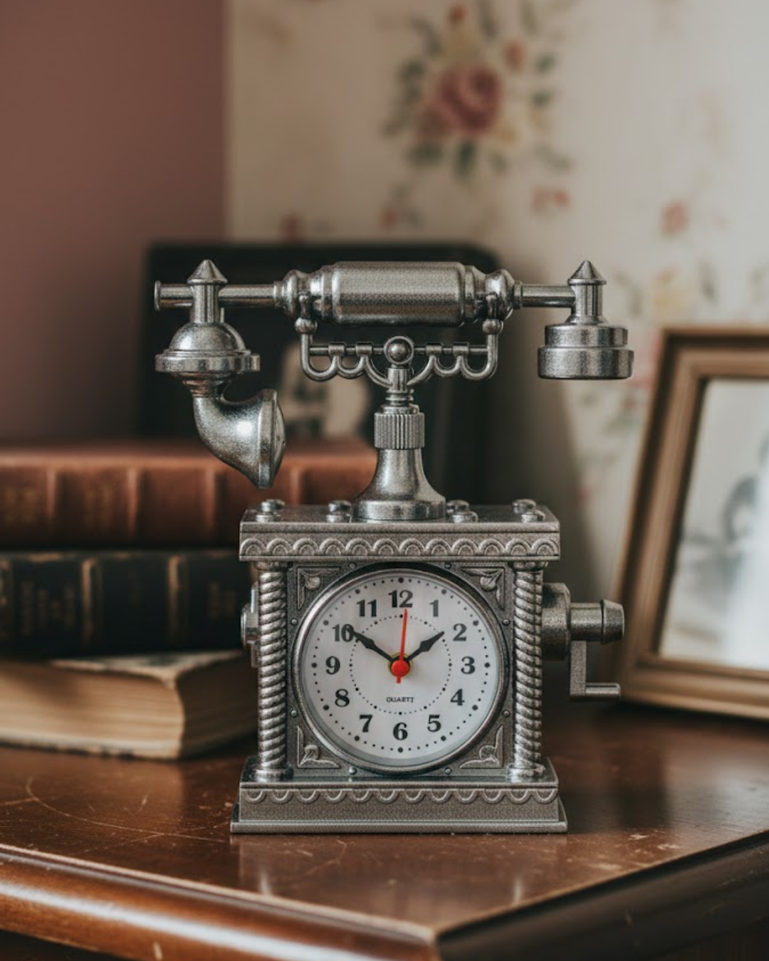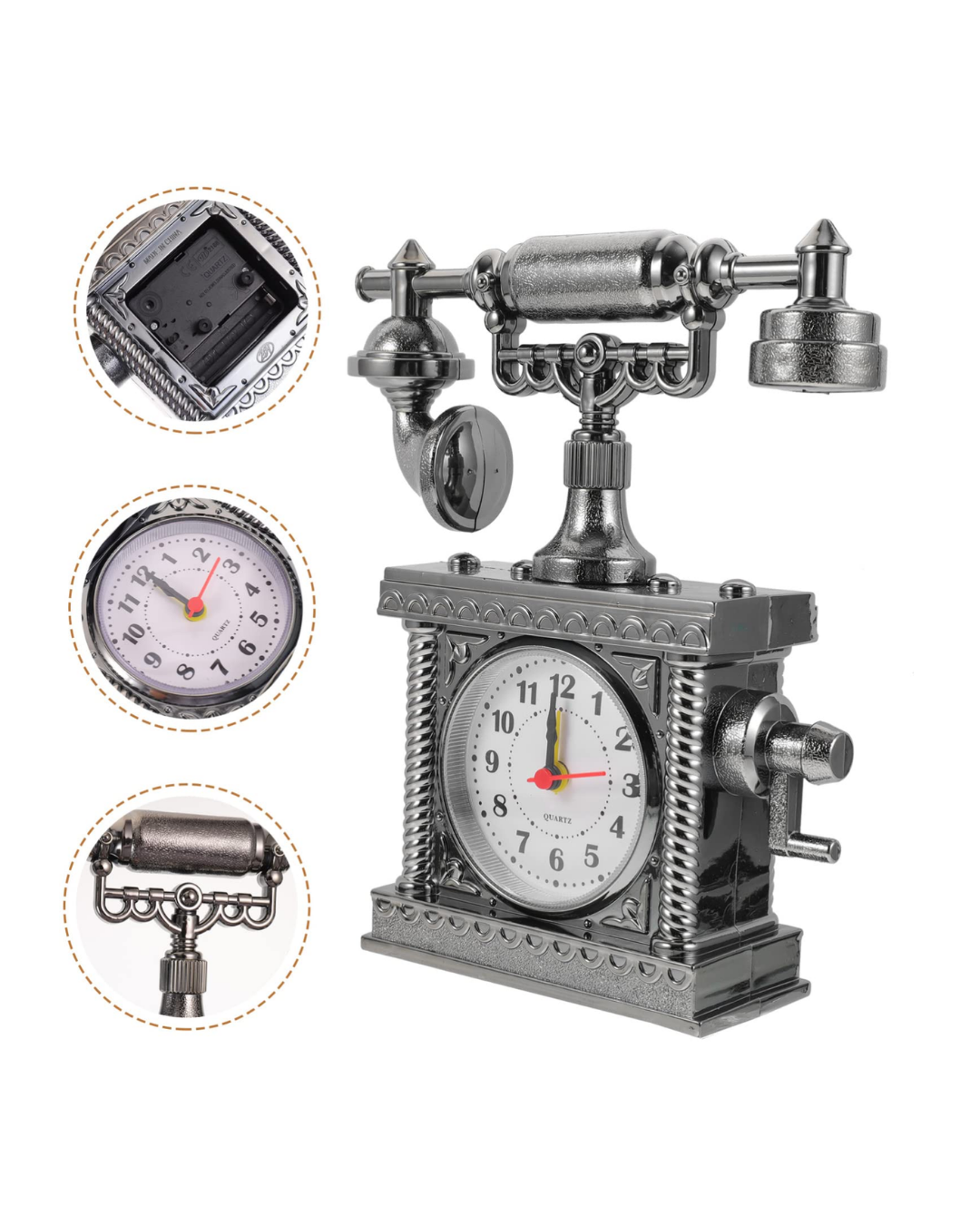 Vintage Telefon Tasarımlı Masa Saati ve Çalar Saat Dekoratif Model