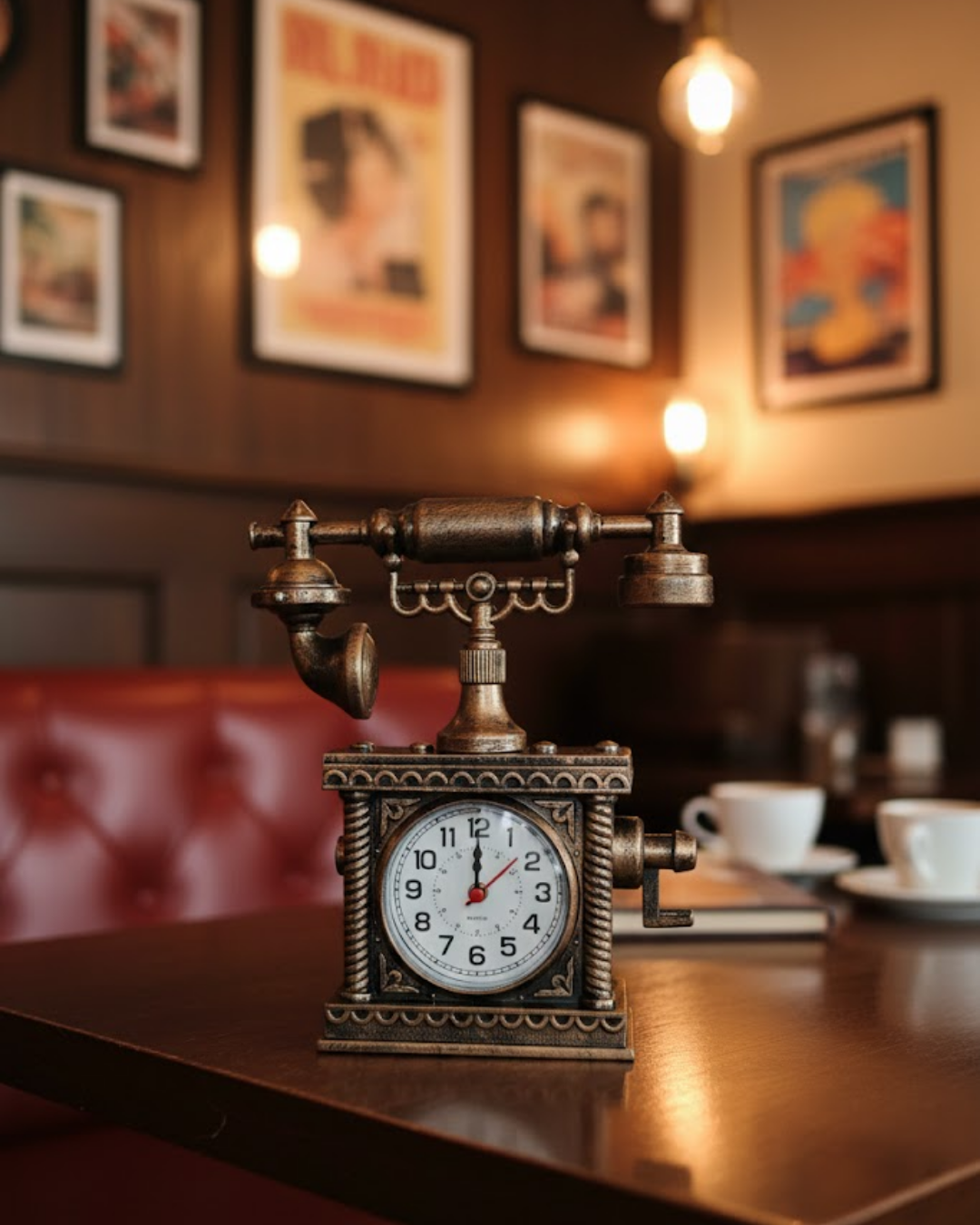 Vintage Telefon Tasarımlı Masa Saati ve Çalar Saat Dekoratif Model