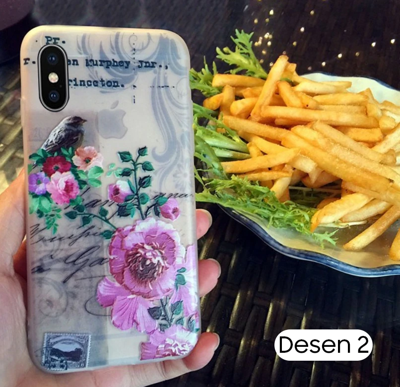 İphone X Xs 3d Gül Desenli Premium Silikon Kılıf-(5775)