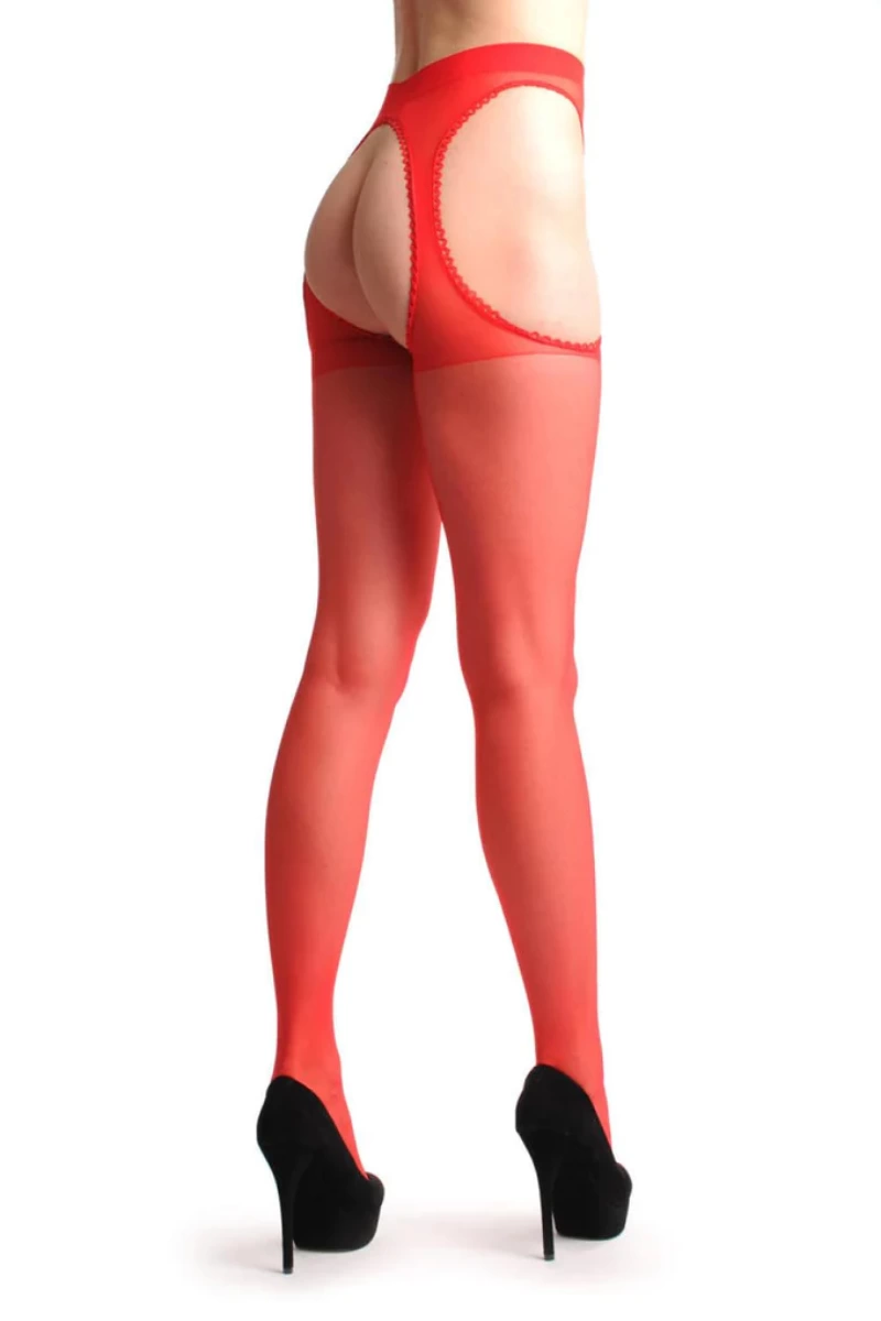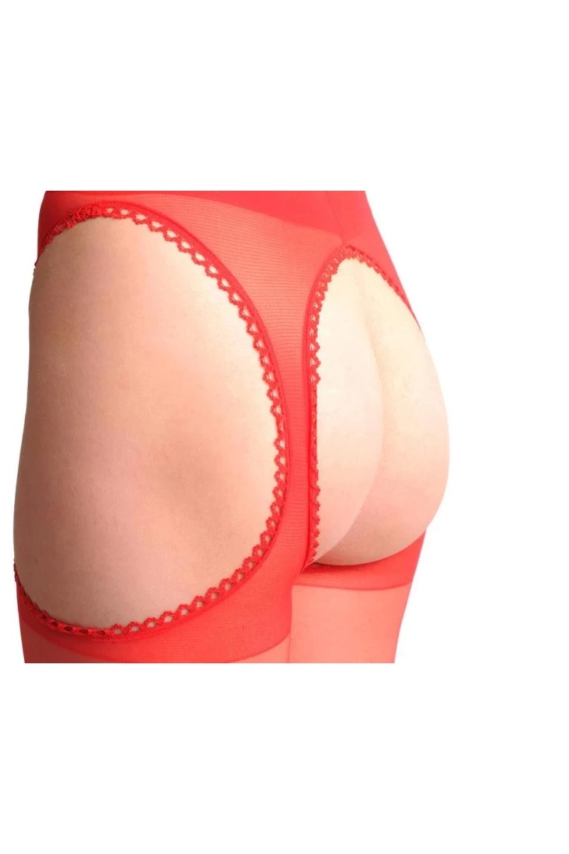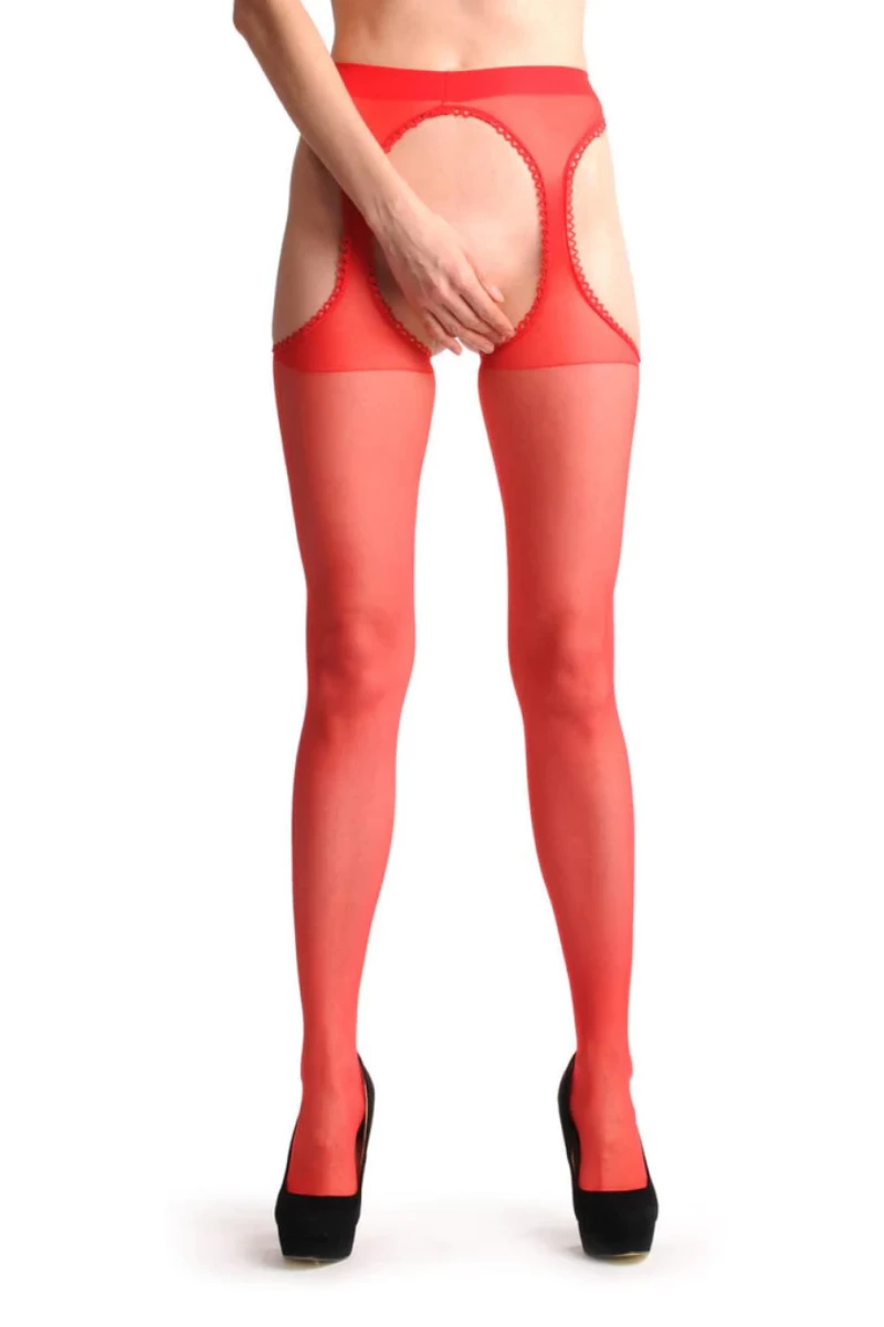 Kırmızı Kenarları Dantelli Özel Bölgesi Açık Külotlu Çorap