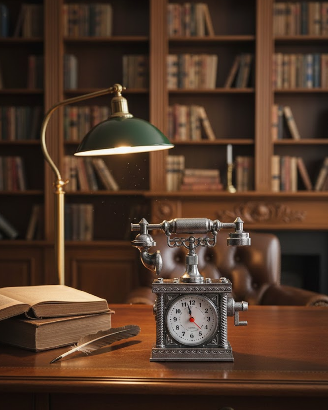 Vintage Telefon Tasarımlı Masa Saati ve Çalar Saat Dekoratif Model