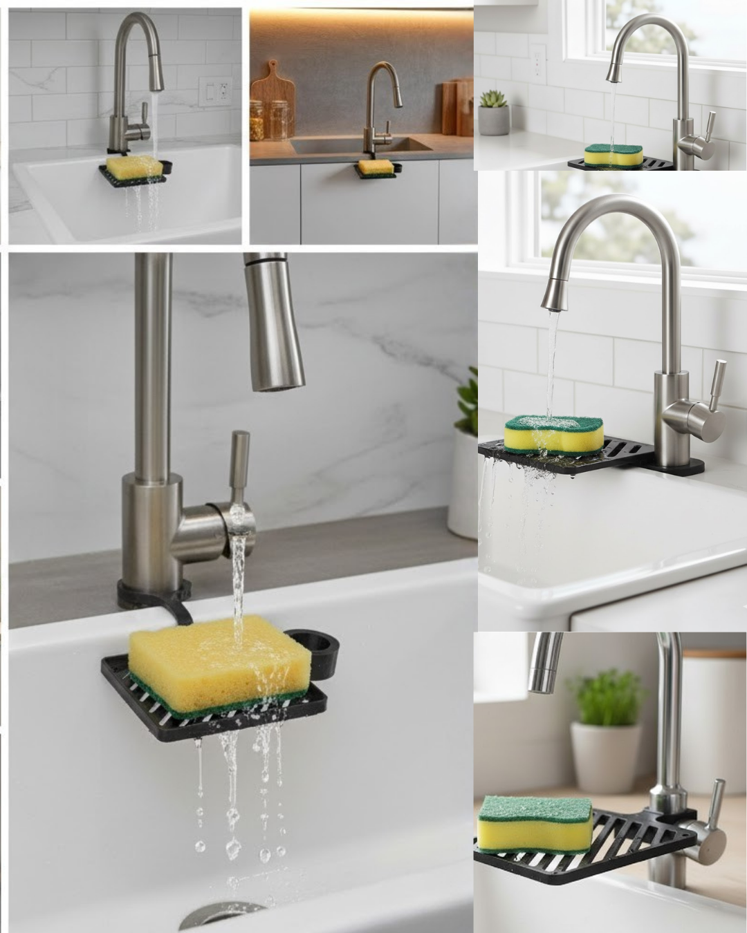 Musluğa Monte Sünger Organizeri Hijyenik Drenajlı Pratik Tasarım