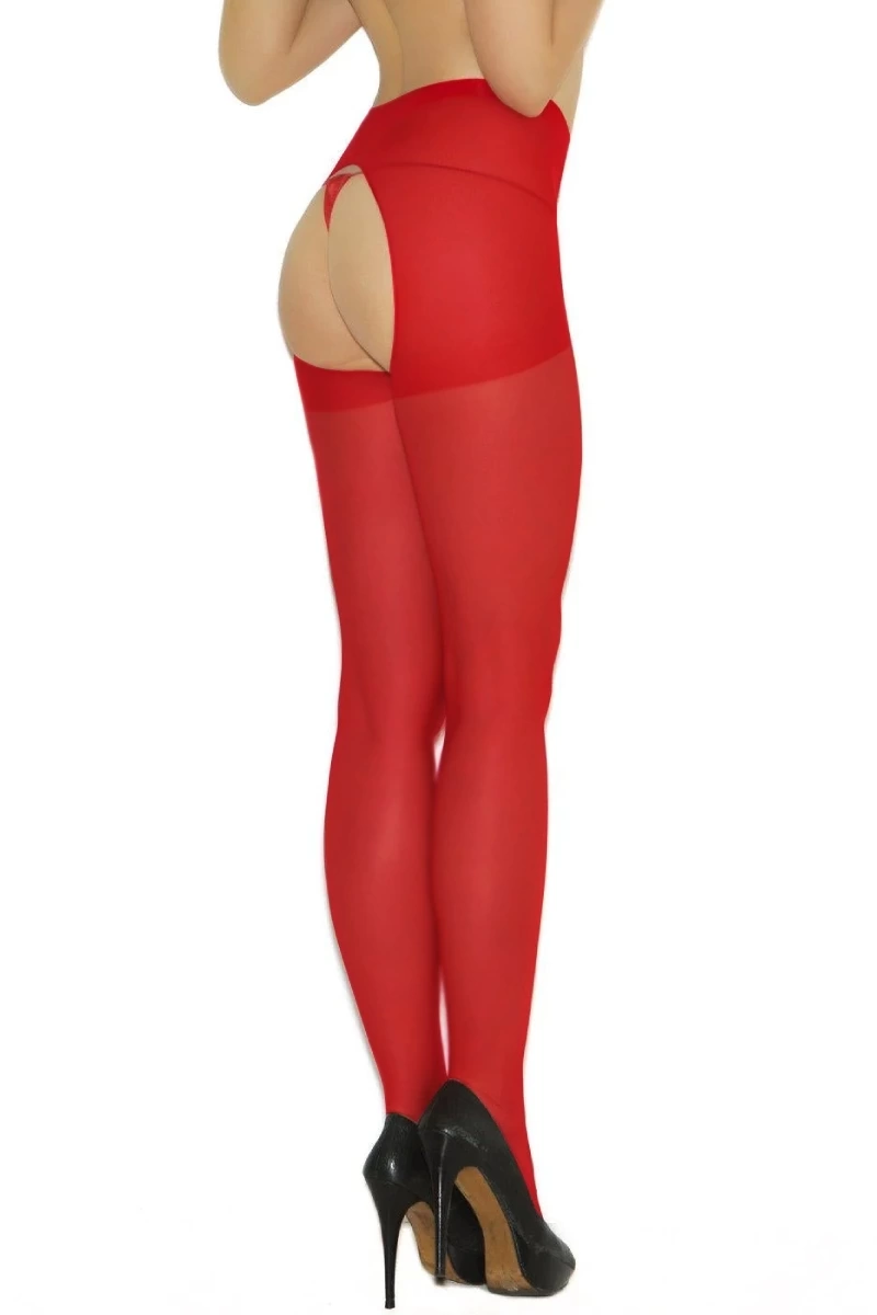 Kırmızı Kenarları Dantelli Özel Bölgesi Açık Külotlu Çorap