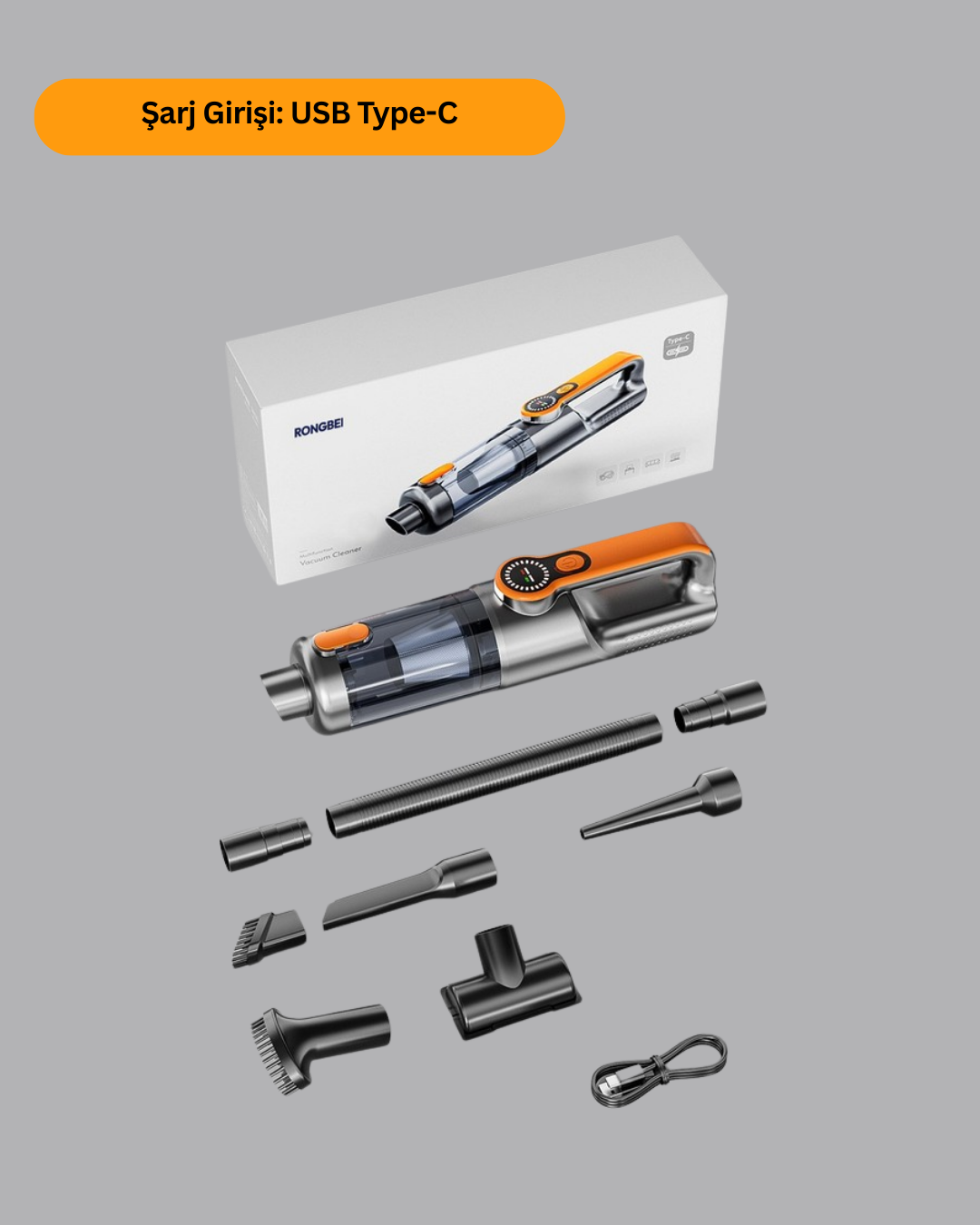 Taşınabilir Şarjlı El Süpürgesi Çok Yönlü Temizlik 5 Başlıklı Numaratör Hediyeli