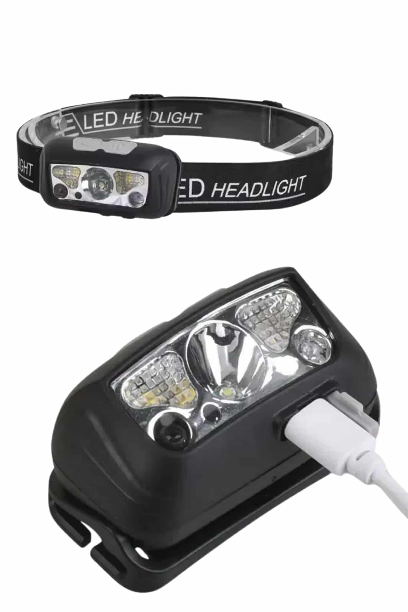 300 Lümen Sensörlü LED Kafa Lambası USB Şarjlı SOS Modlu