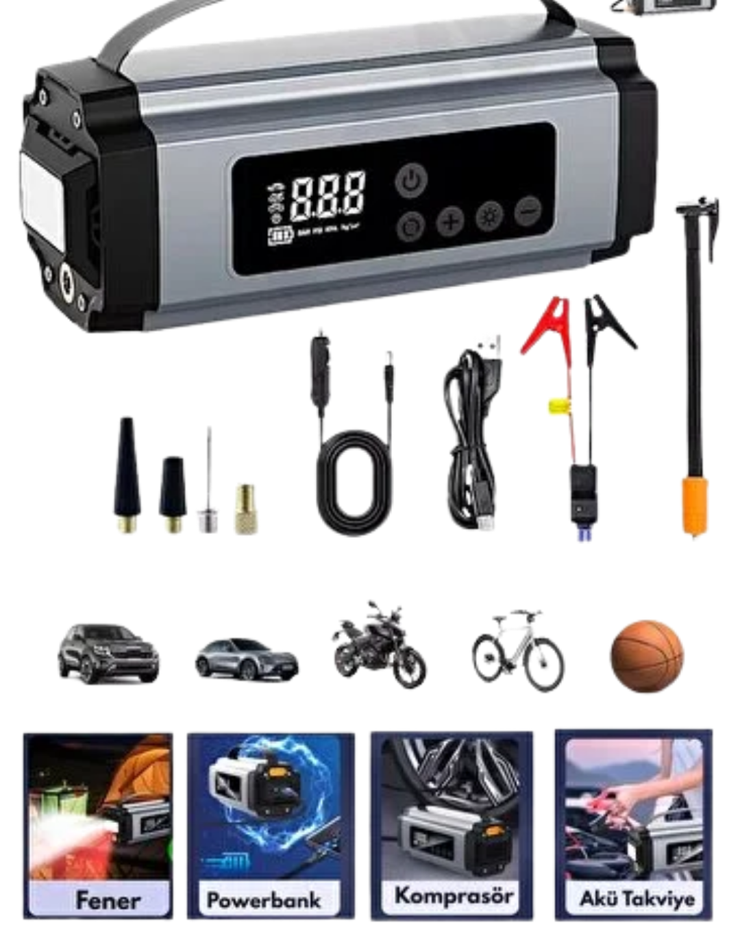 Taşınabilir Araç Akü Takviye ve Hava Kompresörü Powerbank Özellikli